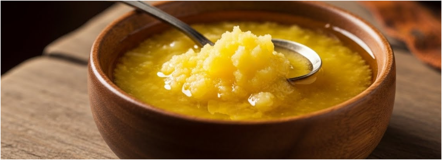 일반 버터와 비교해 발연점이 높고 풍미가 진해 요리 전반에 쓰기 좋습니다. 수분과 고형 성분이 빠진 순수 지방이 남는 것이 핵심입니다. 이로 인해 다양한 요리에 응용할 수 있는 유연성을 얻습니다.
