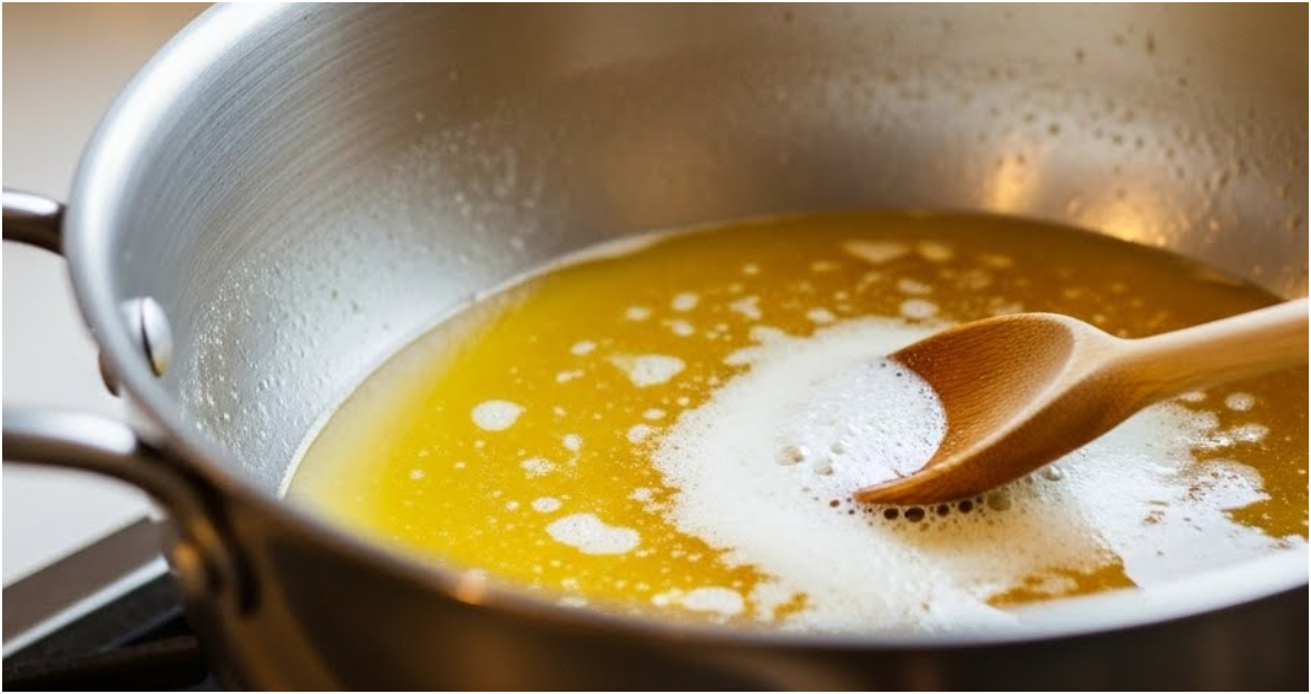 버터가 녹아가며 거품이 계속 생기고 점차 잦아들면 분리 과정이 원활히 진행된 신호입니다.