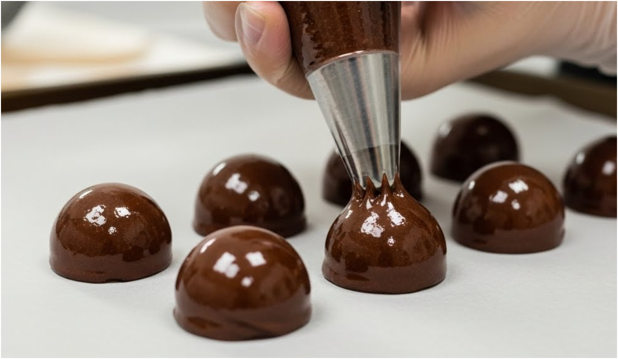 녹인 마시멜로를 넓게 펼친 뒤 속재료를 올려 감싸고, 표면에 코코아 가루를 묻혀 마무리합니다. 이 과정에서 장갑이나 오일을 살짝 사용하면 작업이 수월합니다. 형태를 잡은 뒤에는 잠시 식혀 구조를 안정화합니다.