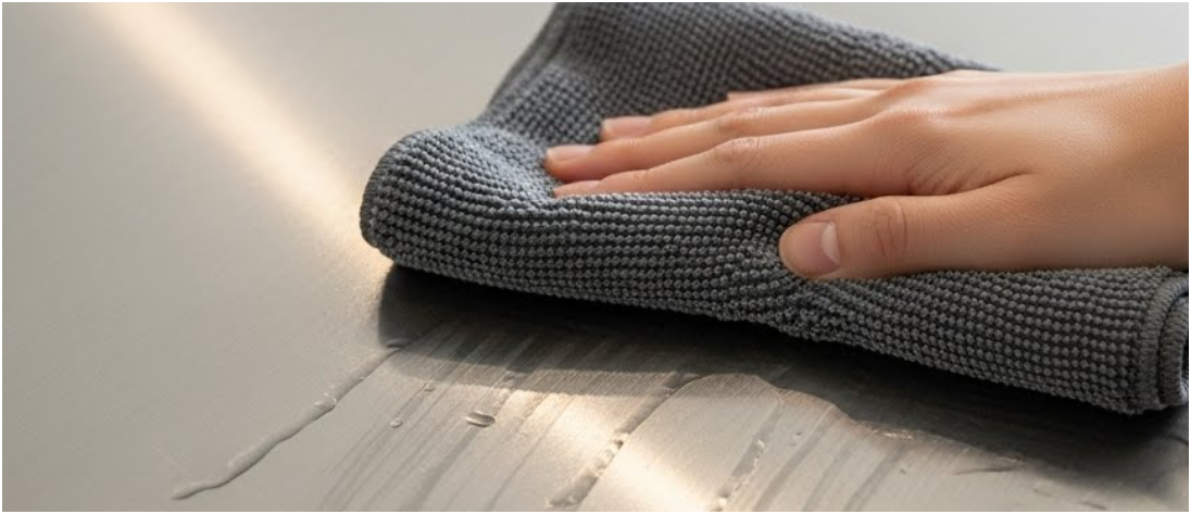 부드러운 스펀지나 키친타월을 사용하는 것이 좋습니다. 과도한 힘보다는 반복 세척이 더 효과적입니다.