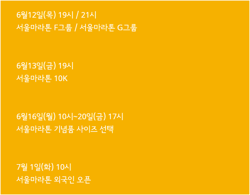 | 대회 장소 | 서울 도심 | 교통 통제 유의 |